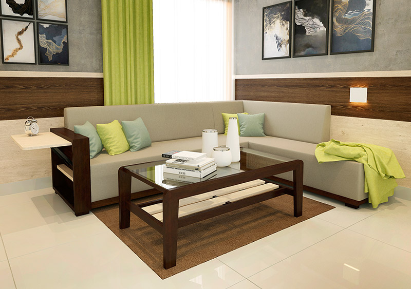 Modish L Shape Sofa In Teak Wood